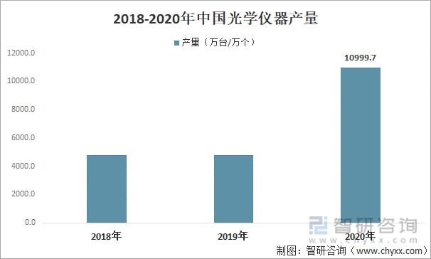 根据上海仪器仪表协会数据:2020年中国光学仪器产量突破1亿台/亿个,达10999.7万台/万个。
